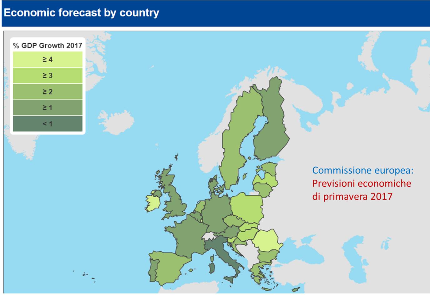 Nonostante ciò, nell’Unione europea diversi Stati membri – tra i quali l’Italia – sono stati oggetto e continuano a essere oggetto di “processi di aggiustamento per correggere squilibri macroeconomici accumulatisi in passato” e molti Stati membri fanno fronte a una bassa crescita: le “Previsioni economiche 2017” della Commissione europea evidenziano come quest’anno l’Italia sia il Paese dell’Unione europea che crescerà di meno, persino della Grecia e di Cipro, Paesi nei quali la “cura da cavallo” imposta dall’Unione europea sta producendo risultati di crescita che vanno oltre ogni aspettativa.
