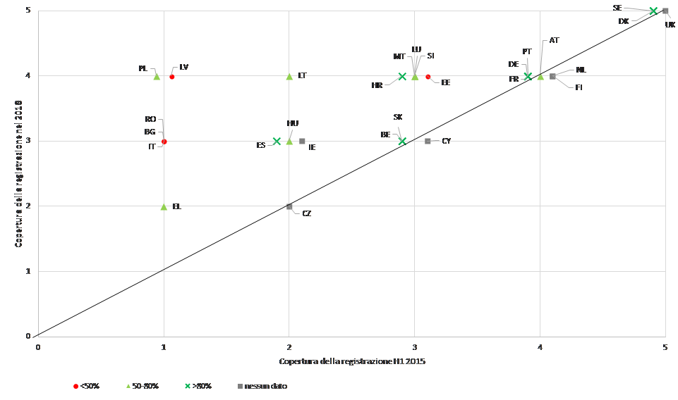 Dall’adozione della raccomandazione, 15 Stati membri hanno migliorato la qualità delle misure messe in atto per incoraggiare la registrazione, come emerge dal seguente grafico.