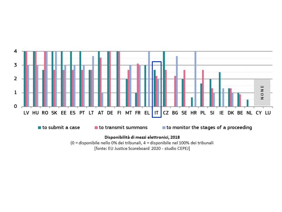 Tali riforme appaiono non più rinviabili: come mette in evidenza il “Quadro di valutazione UE della giustizia 2020” molti Stati membri dell’Unione europea stanno raggiungendo ottimi risultati non solo con lo sviluppo delle più comuni tecnologie dell’informazione e della comunicazione (TIC) nel sistema giudiziario, ma addirittura ricorrendo all’uso dell’intelligenza artificiale, cioè a sistemi molto sofisticati di gestione delle procedure processuali.