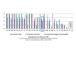 La capacità di completare specifiche fasi della procedura giudiziaria con mezzi elettronici è una parte importante della qualità dei sistemi giudiziari, poiché la presentazione elettronica delle domande, nonché la possibilità di monitorare e far avanzare un procedimento online può facilitare l’accesso alla giustizia e ridurre i ritardi e costi. Anche i sistemi TIC nei tribunali svolgono un ruolo crescente nella cooperazione transfrontaliera tra le autorità giudiziarie e facilitano l’attuazione della legislazione dell’Unione europea, ad esempio in materia di procedimenti di modesta entità.