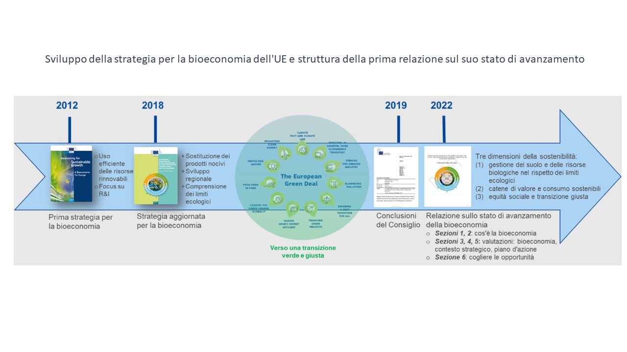 Con la sua prospettiva sistemica, essa svolge un ruolo importante nel raggiungimento della neutralità climatica e della sostenibilità ambientale, economica e sociale fissati dal Green Deal europeo e, pertanto, nell’approvare la strategia aggiornata sulla bioeconomia, il Consiglio dell’Unione europea aveva chiesto alla Commissione europea una relazione sullo stato di avanzamento dei lavori e, se del caso, un aggiornamento del piano d’azione e/o della strategia entro il 2022.